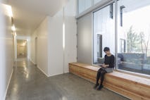 This combination results in a specific corner site response as well as a modulation of the simple mass. Our approach was to push the economic model and maximize the 8,000 sf site for the opportunity to explore more expansive notions of building organization. We proceeded to ventilate the solid block with a series of sectional courts and gardens that allow for daylight and cross ventilation. The effect is a community of collective spaces that enrich and organize the interior public zones, projecting the inner life of the building to provide a vented relief to the massing.